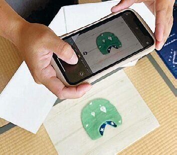 写真映えするように明るい時間帯に撮影を作品がよりよく見えるように、布を敷き、100均の材料で作ったレフ板を使って撮影します。