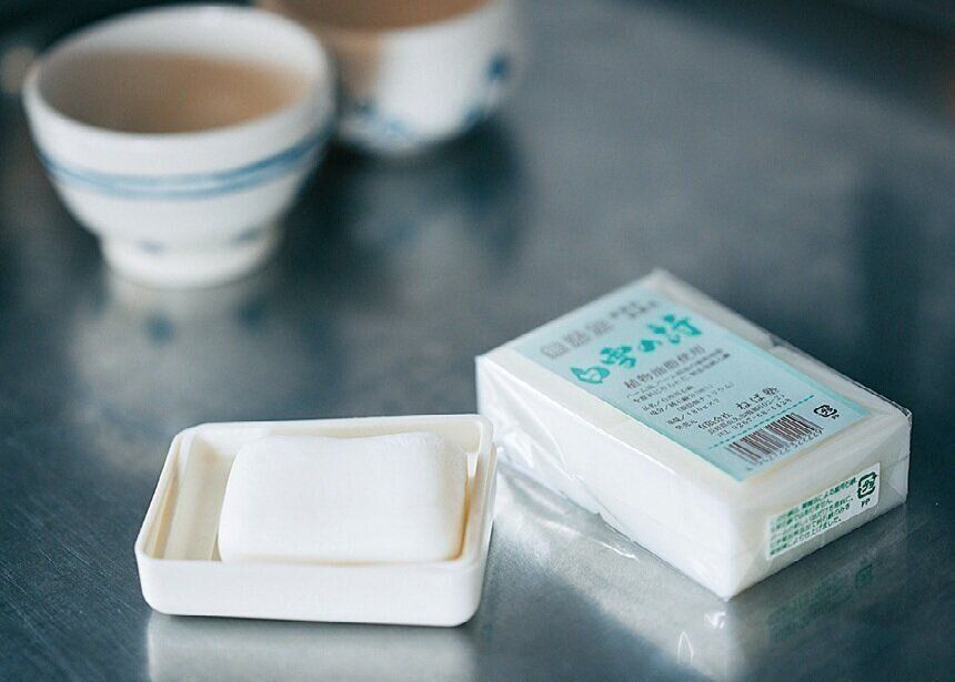 「『白雪の詩』という石けんは無添加で肌に優しい。汚れもよく落ちるので、洗剤がないときの代用にもなります」。大きくて溶けにくく、2個で500円ほどと価格もお手頃♪
