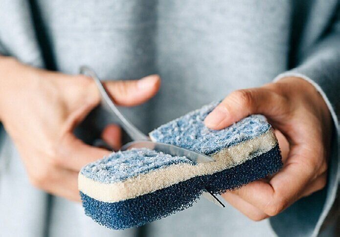 スポンジはダスキンの物を。「とても丈夫で台所の次は風呂掃除用として、最後は4つに切ってトイレ掃除に使っています。少し高めですが、あれこれ買わずに済むので逆に安上がり」。