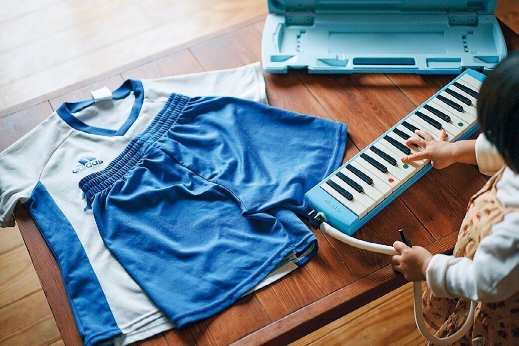 子どもの物はママ友と譲り合い。「高いユニフォームや鍵盤ハーモニカも、周囲に聞いてみたらお下がりをいただけた。もちろん、わが家からも譲れる物はどんどん差し出します」。