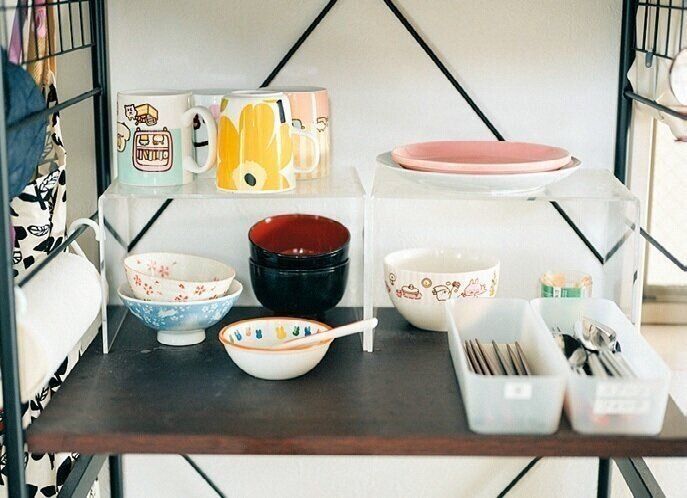 平日の献立は、ご飯・汁もの・おかずの3点だから、食器もこの3つを用意できれば十分。「少なくても何も困らないし、出し入れもしやすい。自炊が苦になりません♪」。