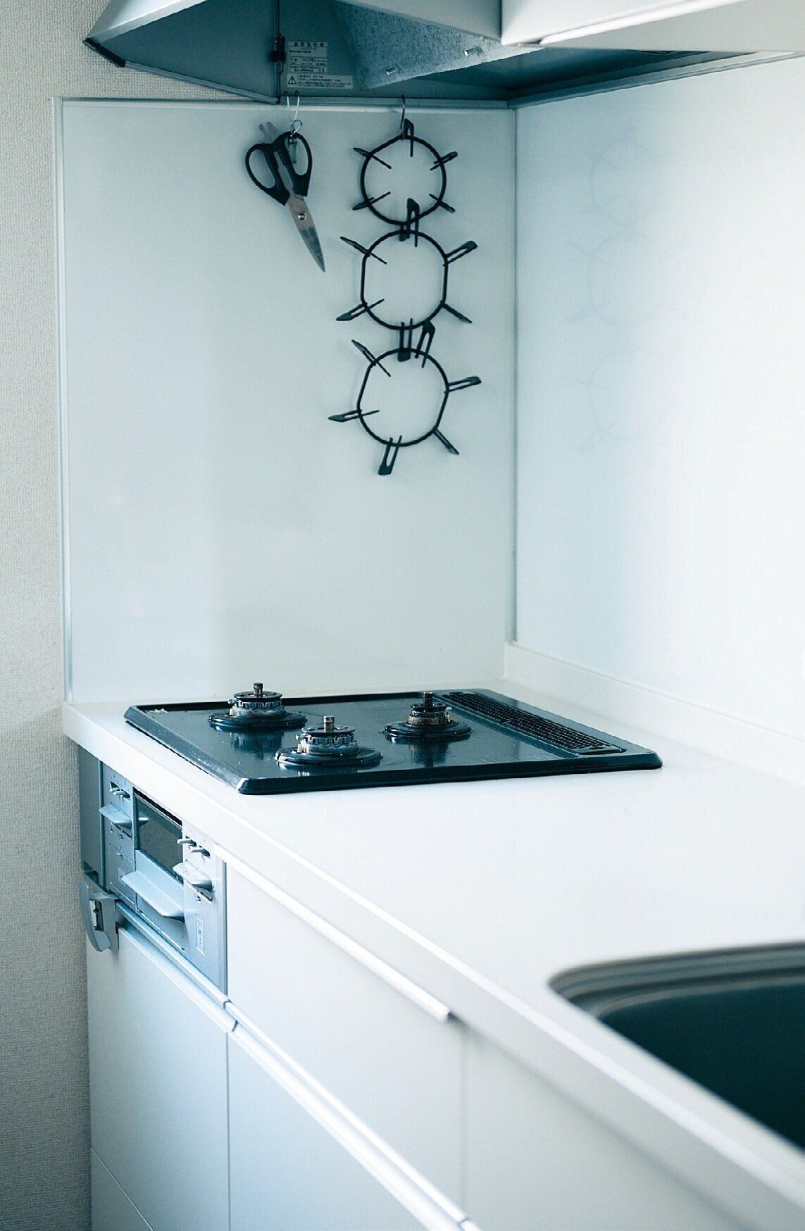 せん切り専用ピーラーなど、便利グッズはほぼなし。「パンは魚用のグリルで焼けるのでトースターもなし。ホットプレートもありませんが、その分、棚の中にスペースがあり、収納がラクです」。