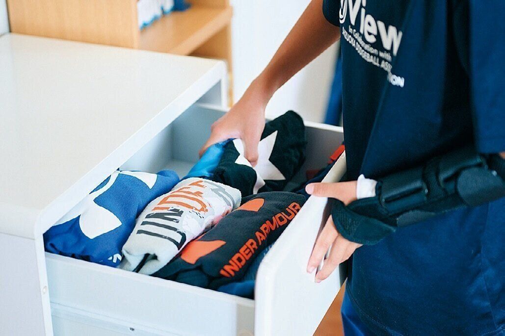 靴や下着、タオルなどを新たに買うときは、手持ちの物を捨ててから。「減らした数だけ買えばいいので、ムダな買い過ぎが出ません。帰ってから、空いた場所にすぐしまえて一石二鳥です」。