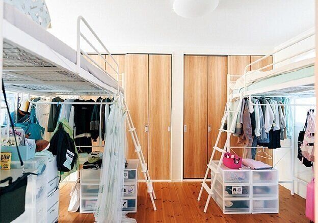 ベッド下を自由に使える自分スペースに。人数分の個室がなくても「子ども部屋」は作れます。