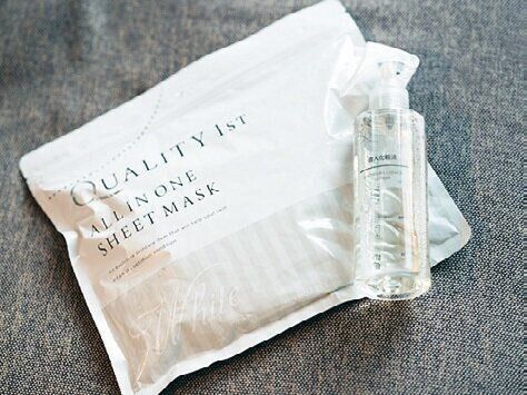 お風呂から出たら、すぐ導入化粧液をつけ、パックをしながら着替えを。「肌が乾燥する前にたっぷり保湿が大事!毎日続けられるよう、特売品のパックを使っています」。