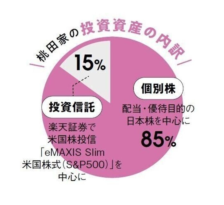 貯蓄の半分以上は配当利回りのいい個別株へ投資。「夫婦の一般NISAと子のジュニアNISAで非課税枠は4馬力。1年お金を貯めながら企業を調べ、年明けの決算期にタイミングを見て購入しています。年約90万円入る配当金で、ローンの繰り上げ返済をする予定!」。