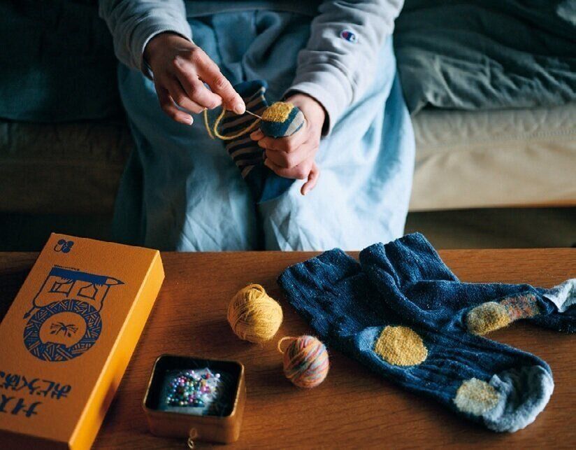 ※ダーニングは、補修部分にカラフルな毛糸を使って飾りにする修繕方法。