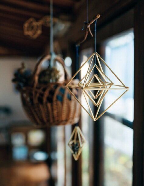 庭で栽培した麦の茎を使ったヒンメリ(モビール)や、草花のドライフラワーを手作り。「身近にある自然のもので工夫して楽しんでいます」。