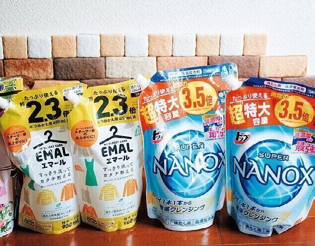 ストックする詰め替え用洗剤は年に数回、ネットでまとめ買い。「ドラッグストアには売っていない、お得な超特大サイズがあり、キャンペーン時にはさらにセット割も。家まで配達してくれるのもラクです」。