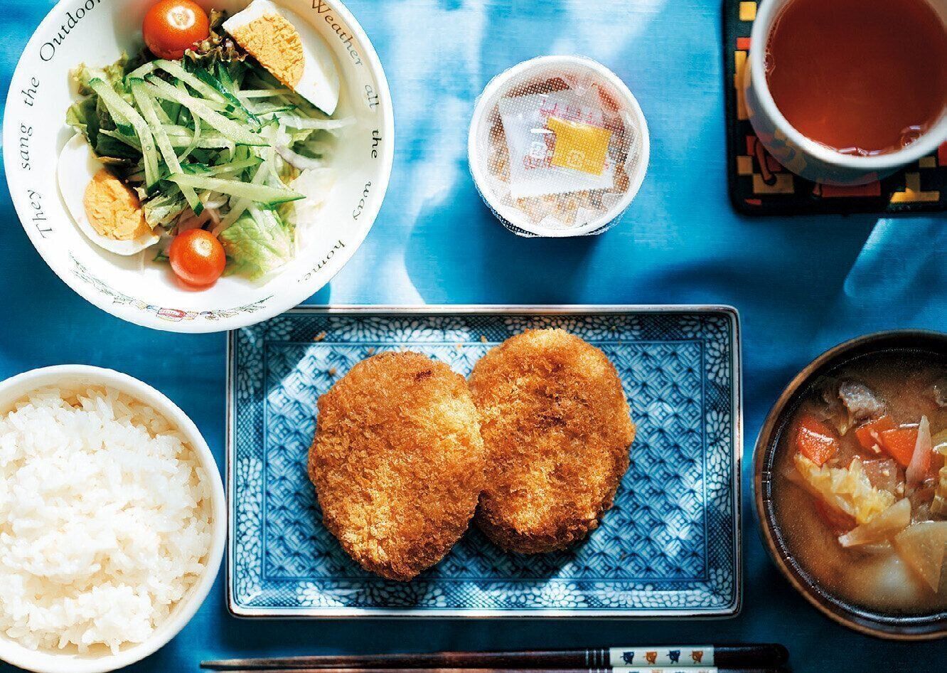 仕事の日は、サラダと汁ものだけ作り、おかずはテイクアウト。「娘がいた頃はいろいろ作りましたが、2人ならコロッケも買ったほうがラクだし経済的。あとは納豆を添えれば十分です」。