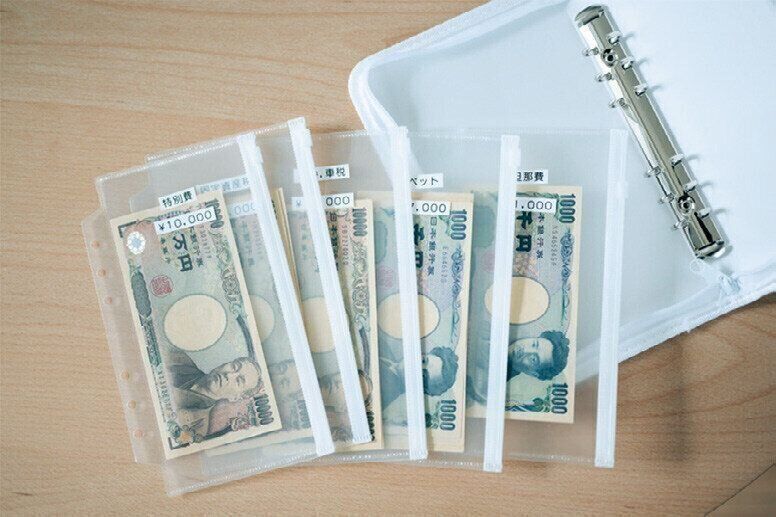 給料を現金で下ろし、固定費、やりくり費、貯蓄に分けるのがマイルール。「"使えるお金"を目で確認すると、大切に使おうと思えます。残金もすぐわかるので確認がラク」。