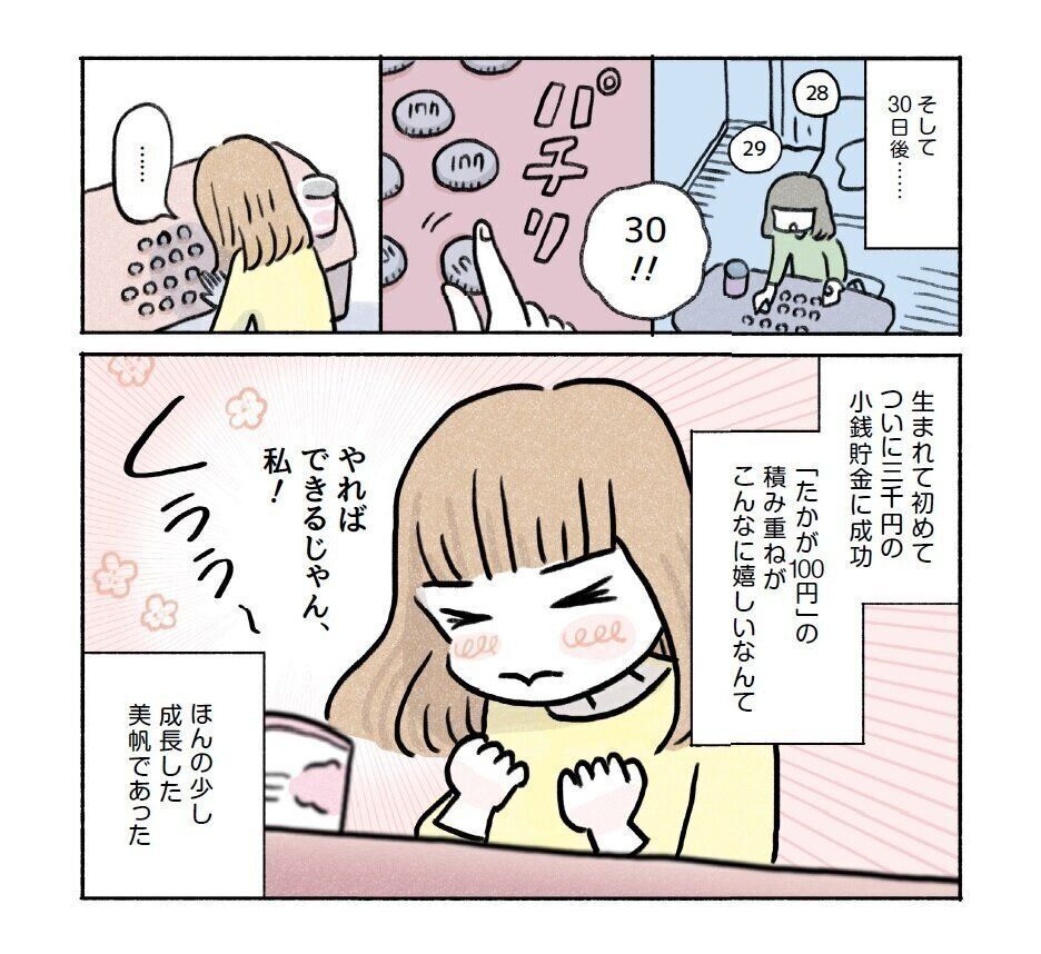 例えば100円節約するのに、「100円しか節約できなかった」と感じるか、「100円も節約できた!」と感じるかで大違い。「節約できた」と感じる人は、今まで意識していなかった100円としっかり向き合えた人。長い目で見ると、お金を貯められる人です。美帆は少額を意識してお金への感度を高め、ちりつもでもお金を貯められる人になれそうですね。