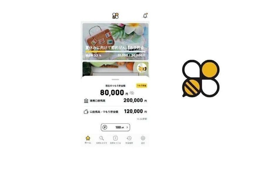 銀行などでの小銭の換金に手数料がかかる昨今、おすすめしたいのが「finbee」。「弁当を作ったら500円」など、節約で浮いた金額を貯金できる。8つの貯金機能があり、ゆうちょ銀行と連携も可。