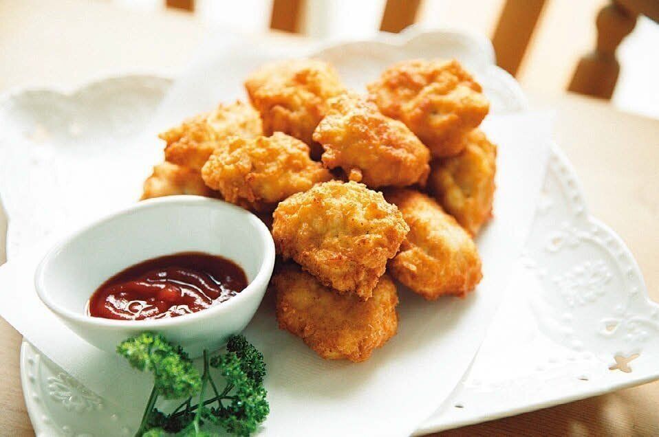 鶏ムネ1枚はフープロでミンチに。豆腐半丁を混ぜ、しょうが、マヨ、しょうゆで味をととのえ、薄力粉をまぶして揚げます。「ふわふわの食感ですぐなくなる人気メニュー!」。