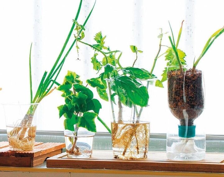 野菜の根や茎などを育てて収穫する再生栽培=リボベジ。少量しか使わないけど、買うと高価な香草や、薬味に使う小ネギなどを家で栽培すれば、いつでも必要分だけ収穫できるので、節約に役立ちます。