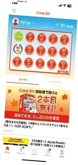 ◆歩いてスタンプをためるとドリンクが無料になるCoke ON(コークオン)