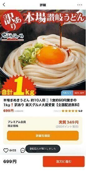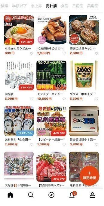 商品が一覧でズラッと並んでいるので、「半額以下」「売れ筋」のカテゴリーから、気になる物をチェック。