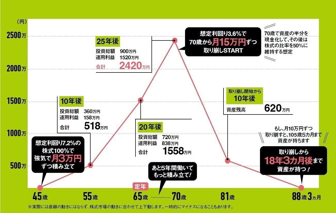 ◇想定利回り3.6%で70歳から月15万円ずつ取り崩しSTART