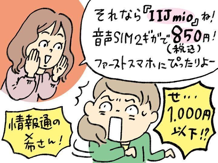 IIJmioは通常でも、音声SIM/eSIMの2ギガで月々850円(税込)。スマホが1,000円以下で使える!というだけでも驚きですが、これが今なら「月額440円割引(最大3カ月)」(音声SIM/eSIMのみ)キャンペーンで、2ギガ=410円(税込)に! さらに、かけ放題もキャンペーン割引中なので、2ギガ+5分通話かけ放題で最大3カ月間500円で使えます。友だちとの約束や家族のお迎えなど、ちょっとした連絡もかけ放題があれば気にせず電話できます。