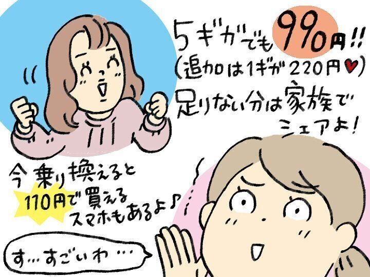 スマホ端末も大特価! 電話番号そのままの乗り換えでは、なんと110円で購入できるスマホも! ママやパパがスマホを大特価でゲット、同時に子ども用には機能が充実したスマホを特価で購入すれば、家族みんながお得に笑顔でスマホ生活をスタートできます。乗り換えしない手はない!ですね。