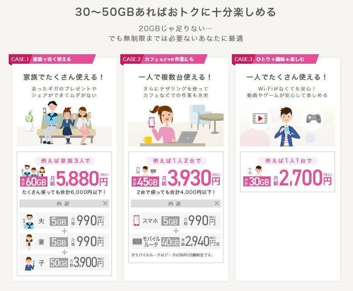 新・大容量プランが登場!家族でシェアしてムダなくギガが使える