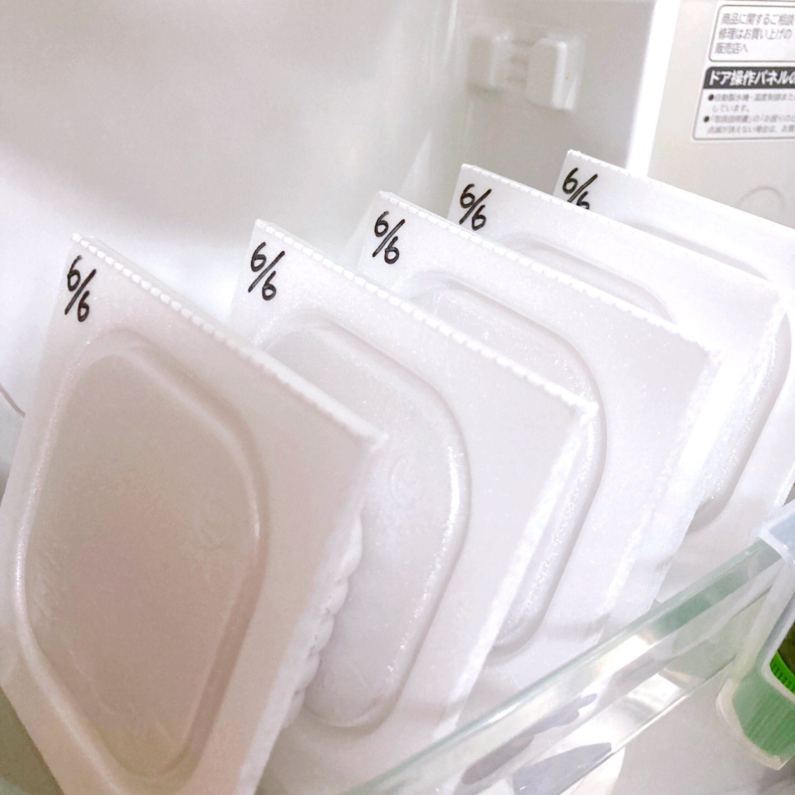 個々の商品に賞味期限などの日付が書いてありますが、正直、見にくい。そこで、【見やすい場所に大きく書いて】しまいましょう!これなら、だれが見てもわかりやすいので、食べ忘れを防止できます。