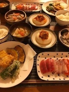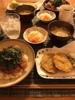 仕事が忙しい週でも\7302でやりくりしています。作り置きおかずを活用したり、冷凍保存してある食材を使ったりで、バラエティーに富んだメニューが並んでいるのはさすが!ぶり漬け丼、とんかつやかぼちゃサラダ、八宝菜など、仕事が忙しい週とは思えない手の込んだ夕食です。料理のレパートリーが多いのが勝因ですね。