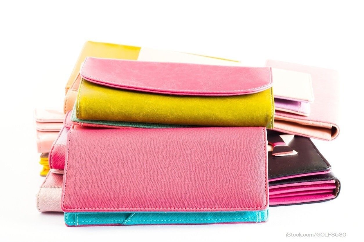 花柄やピンクの財布。ただし、派手すぎる柄の財布はお金が落ちつけずに、交際費や急な出費が増えることも。