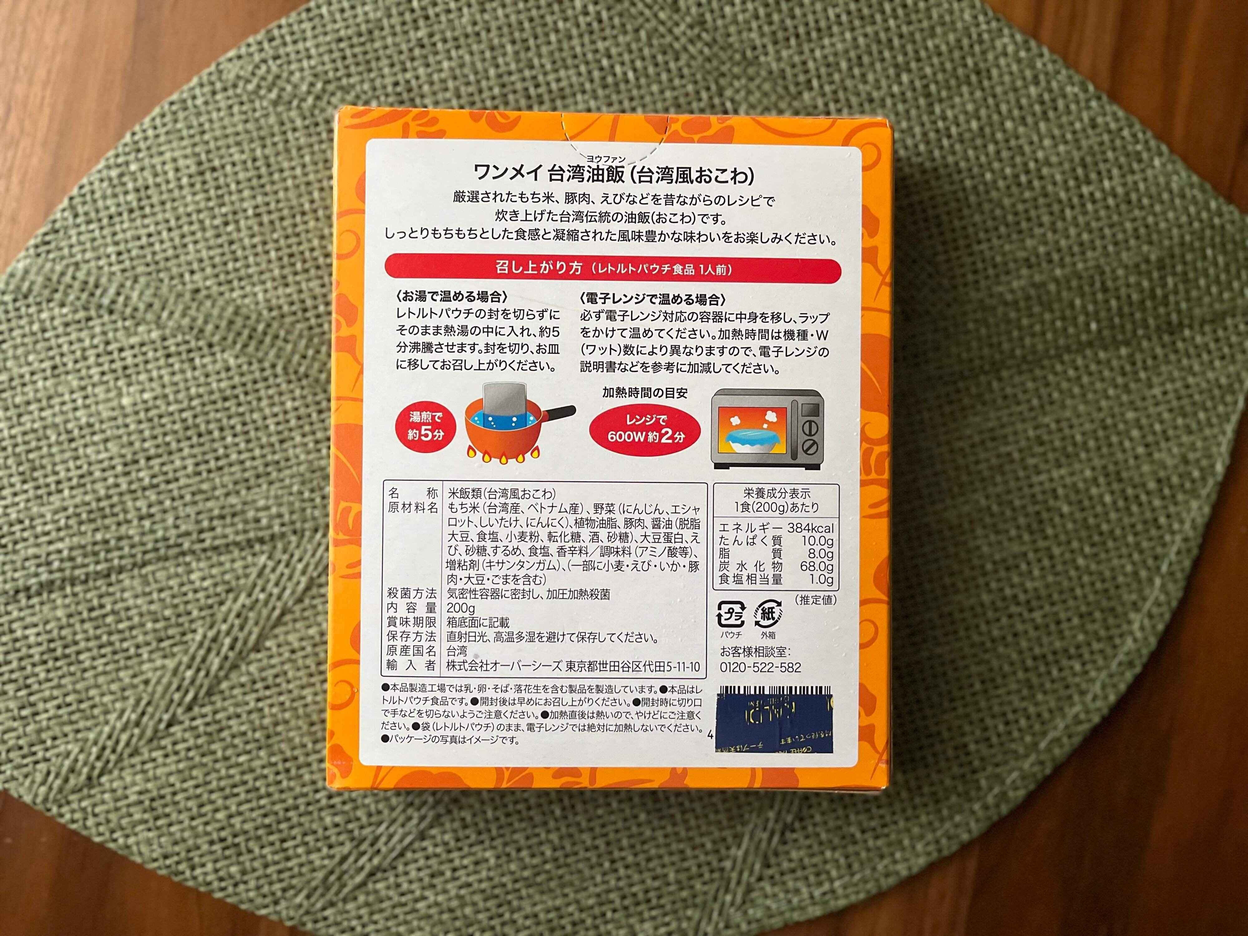 カルディで販売されている「台湾油飯」。一箱一人前(200g)で410円です。