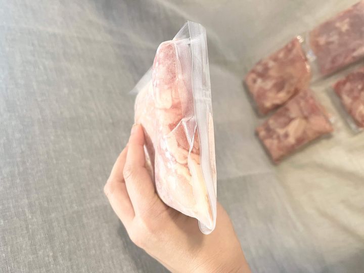しかし、実際届いたものを手に取るとびっくりするほど薄く真空パックに加工して届けてくださるので10パックもすんなり冷凍庫におさまりました!