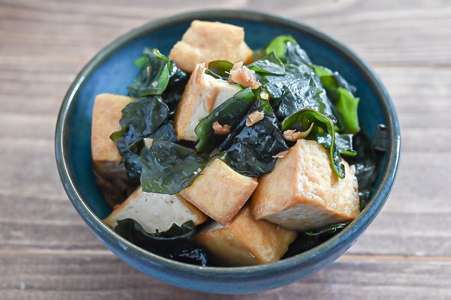 わかめと厚揚げを合わせる、栄養価の高いひと皿です。