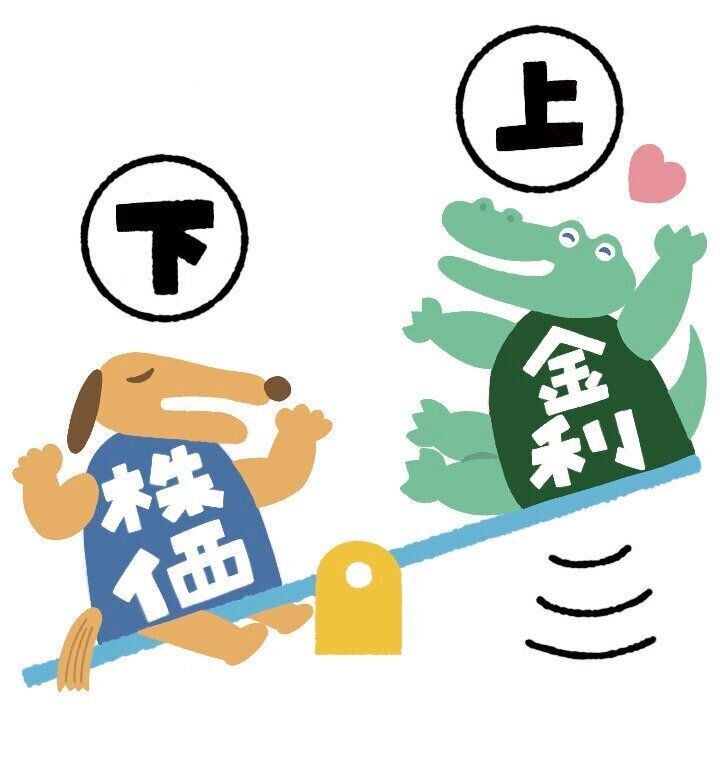 金利が低いということは株高につながるんです。いっぽう金利が上がると債券で運用しようと考える投資家が増えるので、大量の資金が株から債券に移ります。そうすると株価は下落します。金利が上がると株価は下がり、金利が下がると株価は上がる。金利と株はシーソーのような関係です。金利が下がっていく局面は株の買い時ですし、金利が上がっていく局面では、株は買わないほうがいいということになるんです。