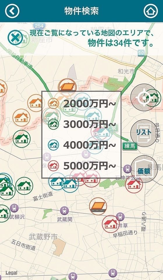 特徴5 スマホアプリなら、地図で物件の価格帯やルートがわかる