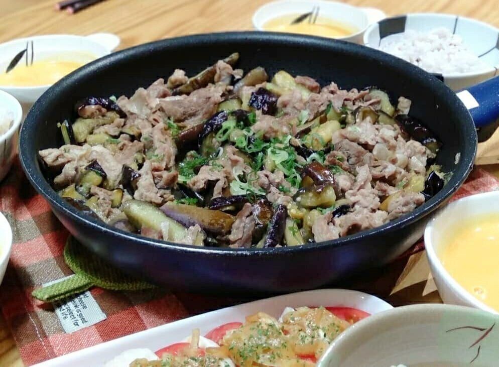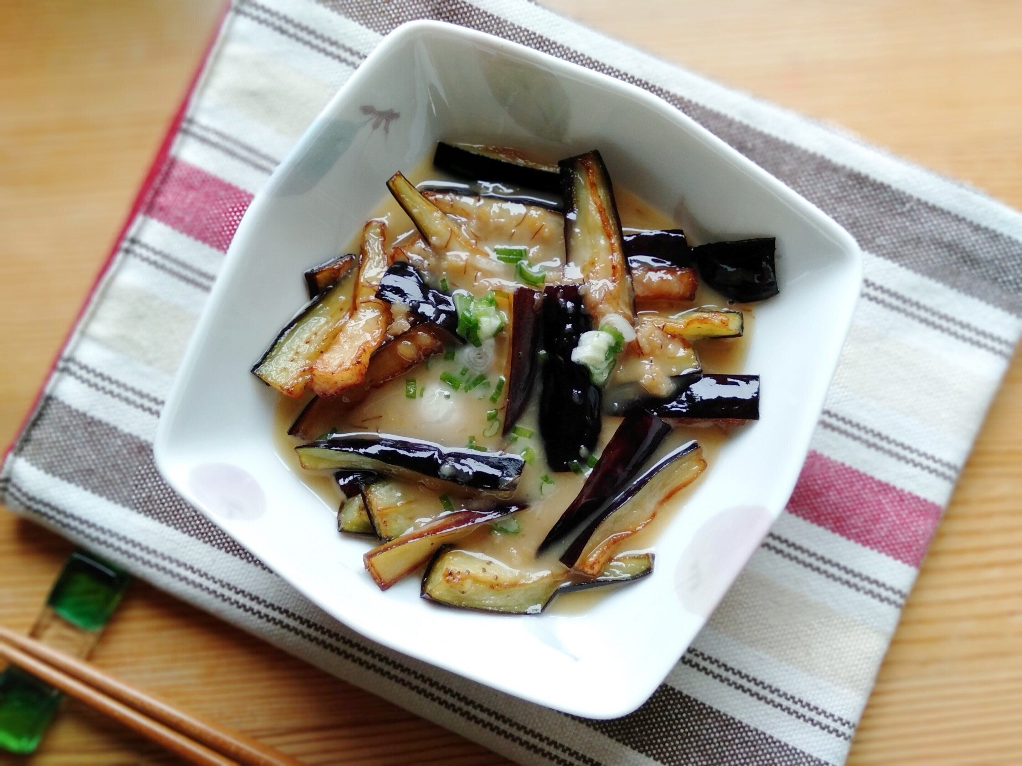 シンプルなナス味噌炒めも、お肉の量を増やせばボリュームのあるメイン料理に。ご飯が進む一品です。