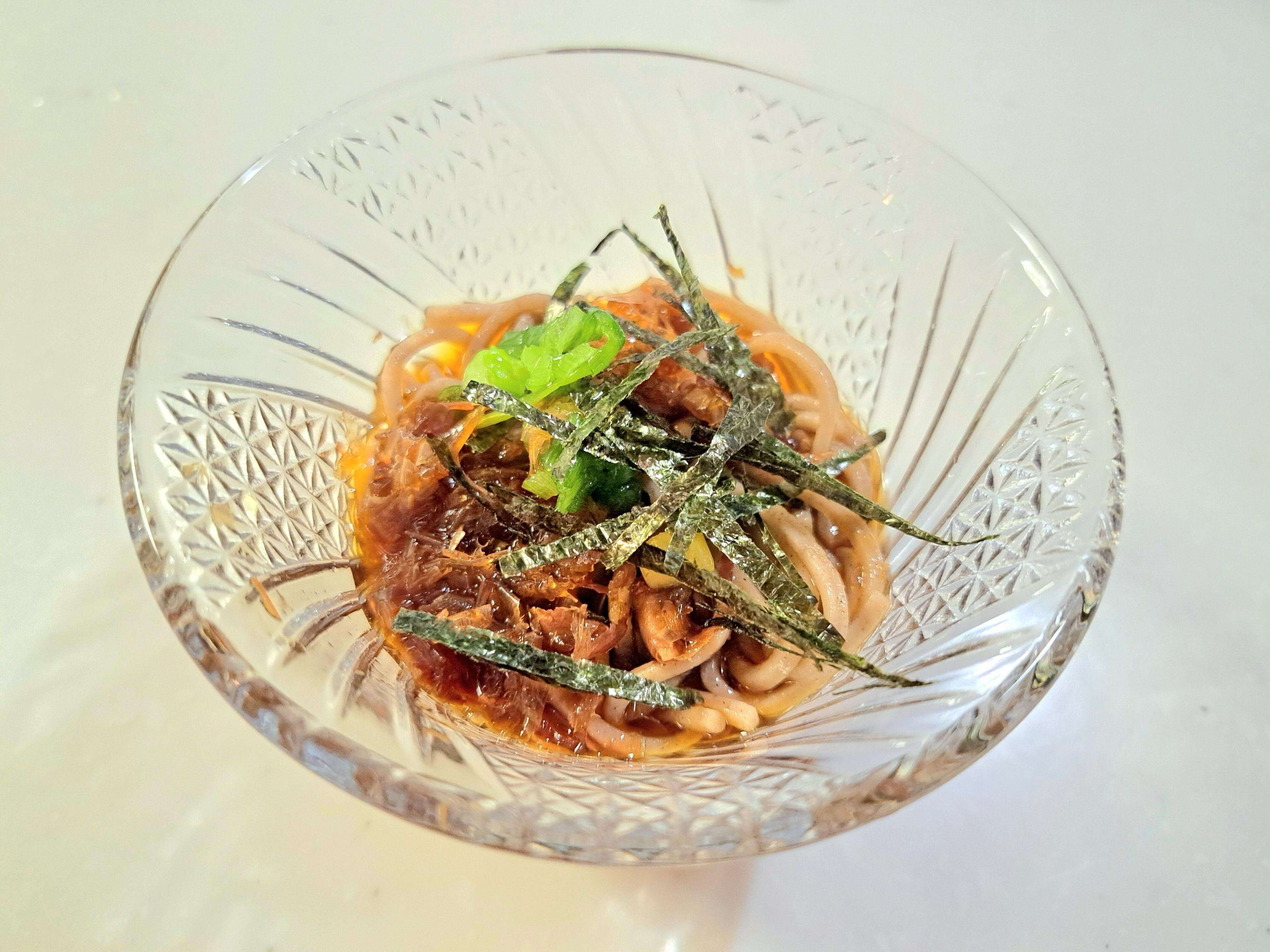 このめんつゆは、かつおぶしも入れて一緒に食べることで旨味がアップし、市販のめんつゆとは違うおいしさが楽しめるんです。
