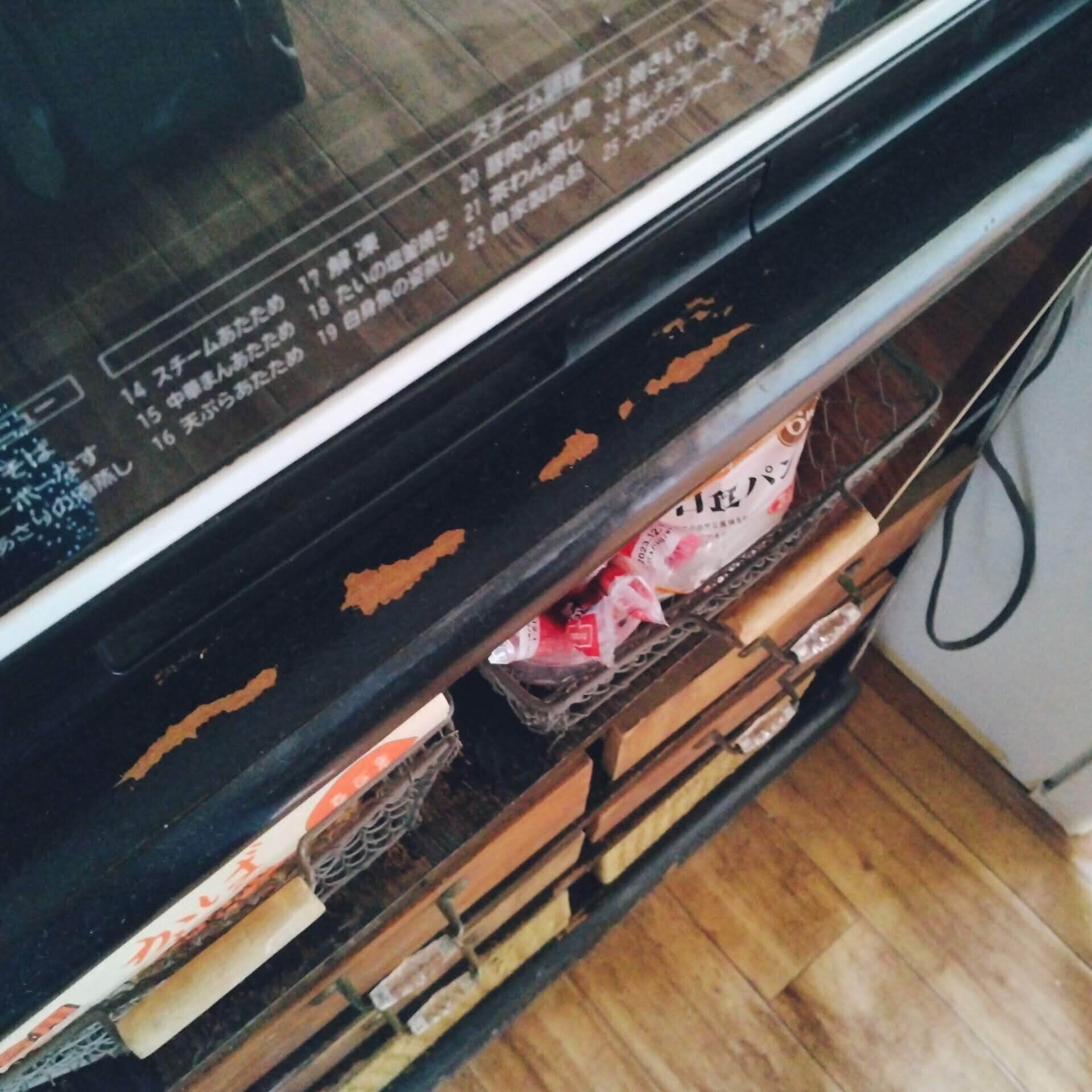ササっと塗っただけで、塗装がハゲた部分が目立たなくなりました。このレンジ台は、高さがわたしの身長に合っていて使いやすいのでこれからできるだけ長く使いたい家具のひとつ。