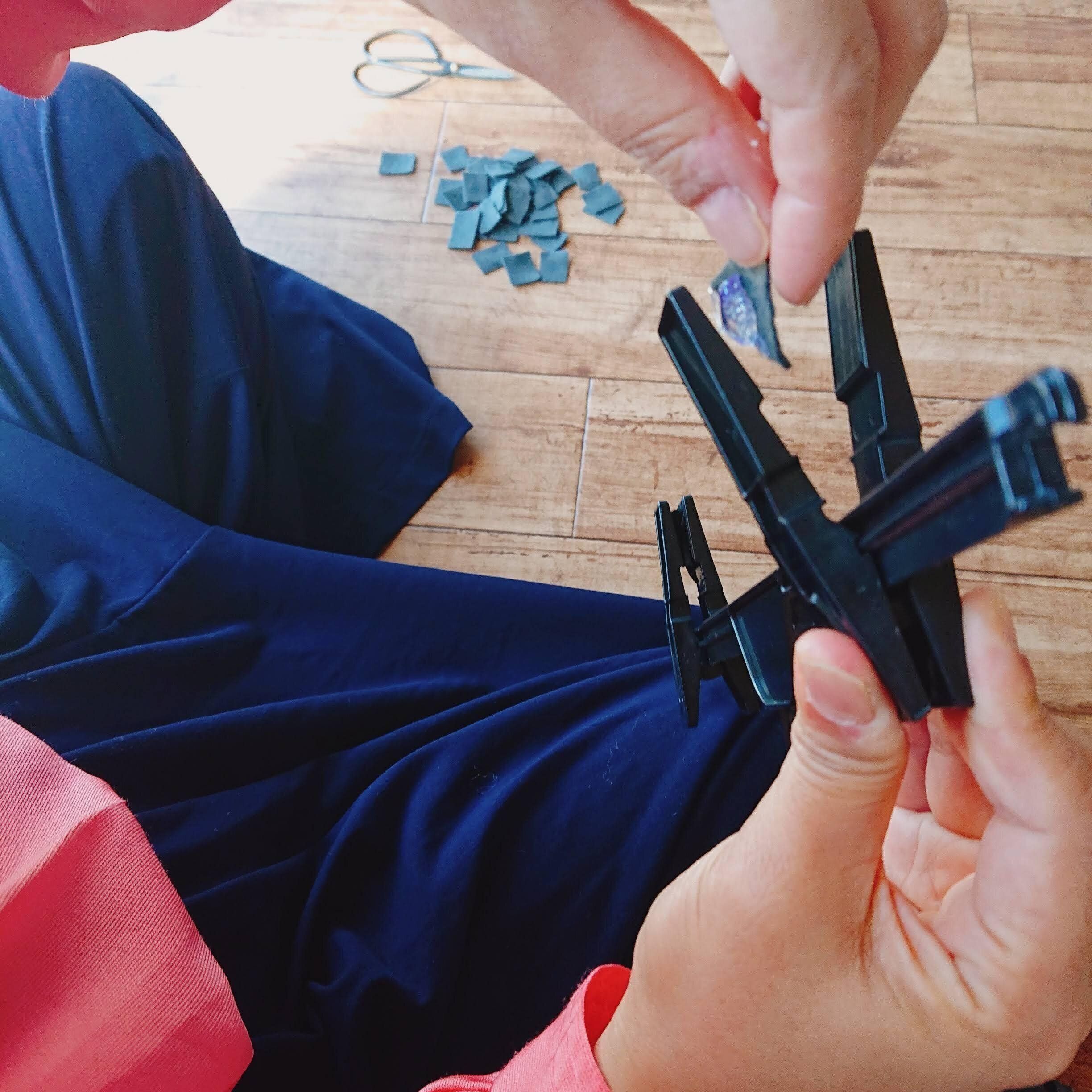 ハンガーの挟む部分の両内側に、フェルトをボンドで貼って滑り止め代わりに。所要時間は約10分。ボンドをしっかり乾かせば、修理の完了です。