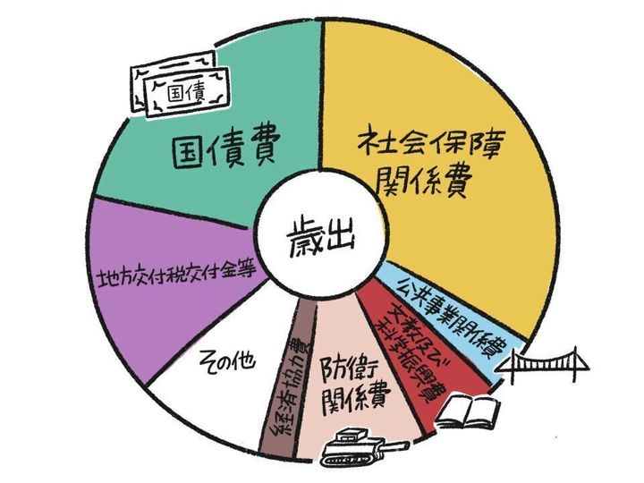■社会保障関係費:公的年金や医療、福祉などに使われる費用