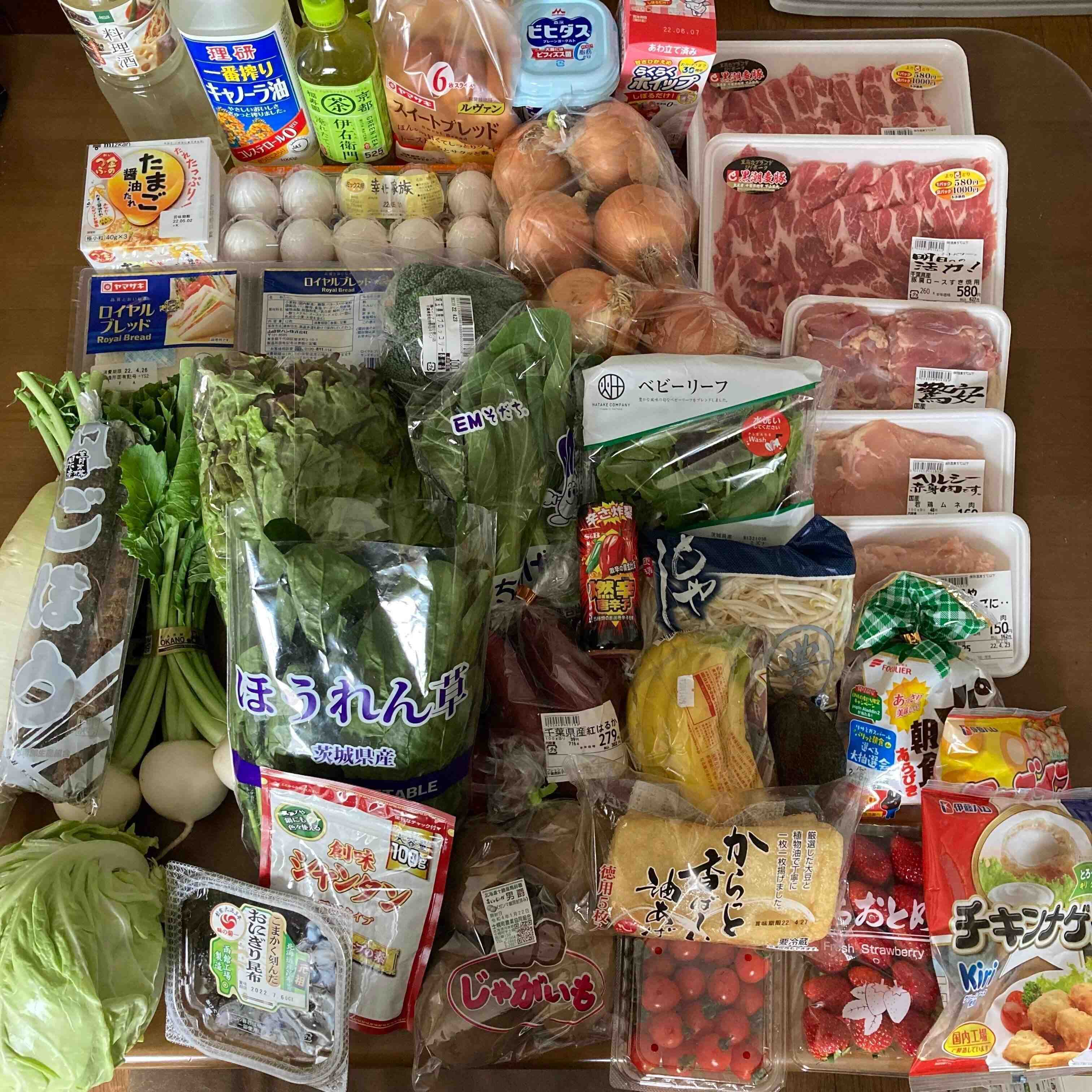 1つめで作成した買い物リストをスーパーへ持っていき、1週間分の食材をまとめ買いします。
