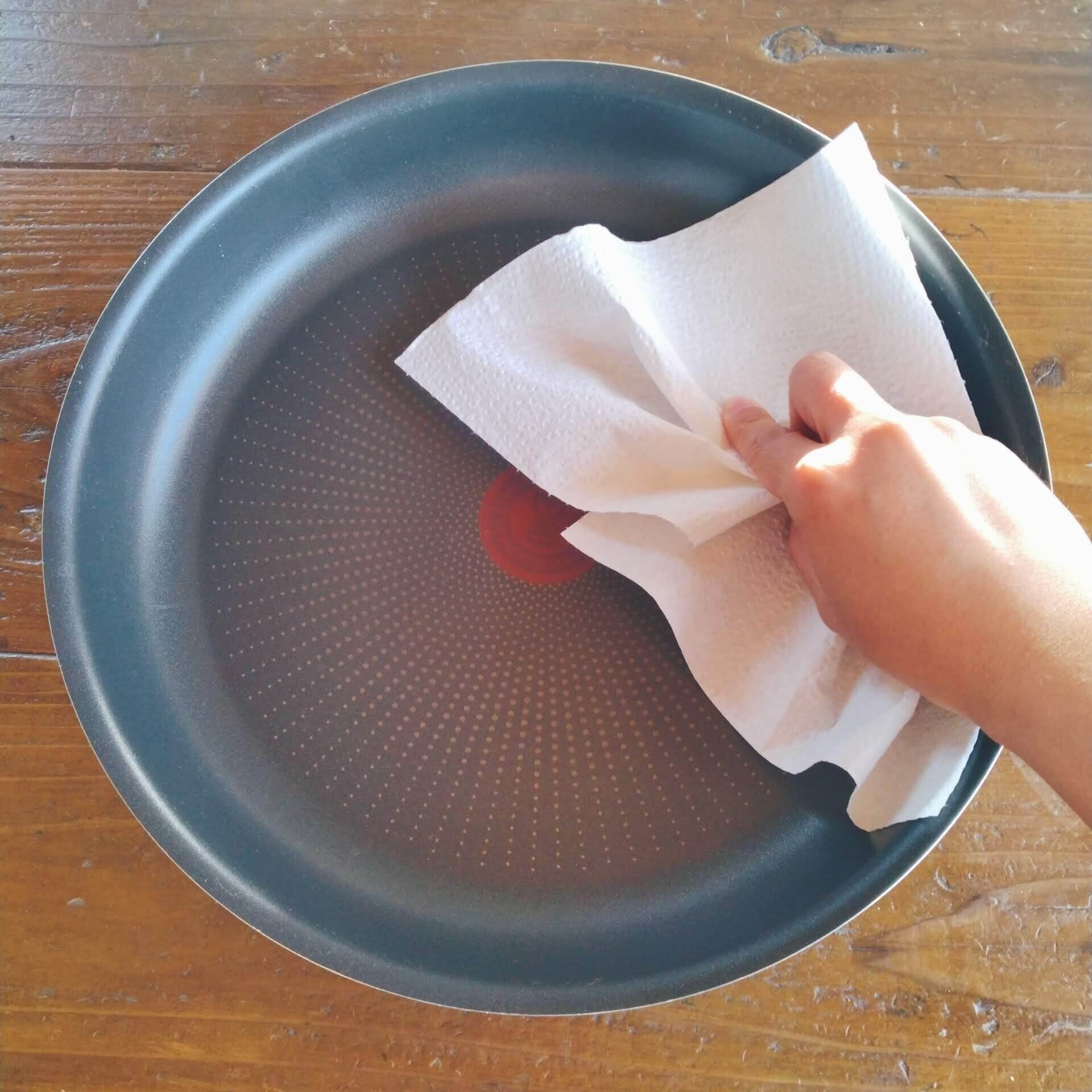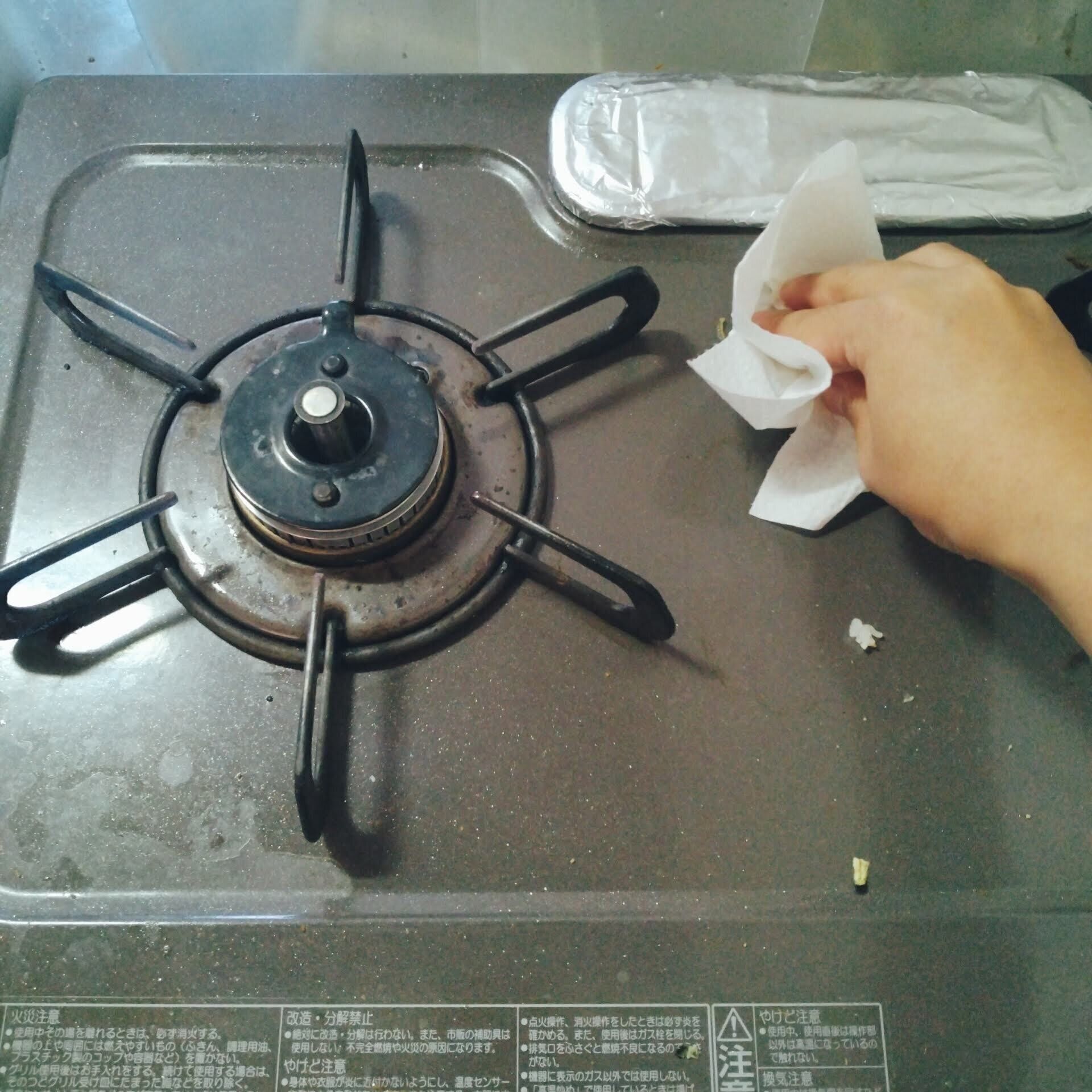水滴を拭いたキッチンペーパーはもったいないので、料理後にフライパンの油をぬぐったり、コンロまわりの汚れ掃除に使えば、水に濡れただけのキッチンペーパーもムダにならず、コンロまわりもキレイになって一石二鳥。