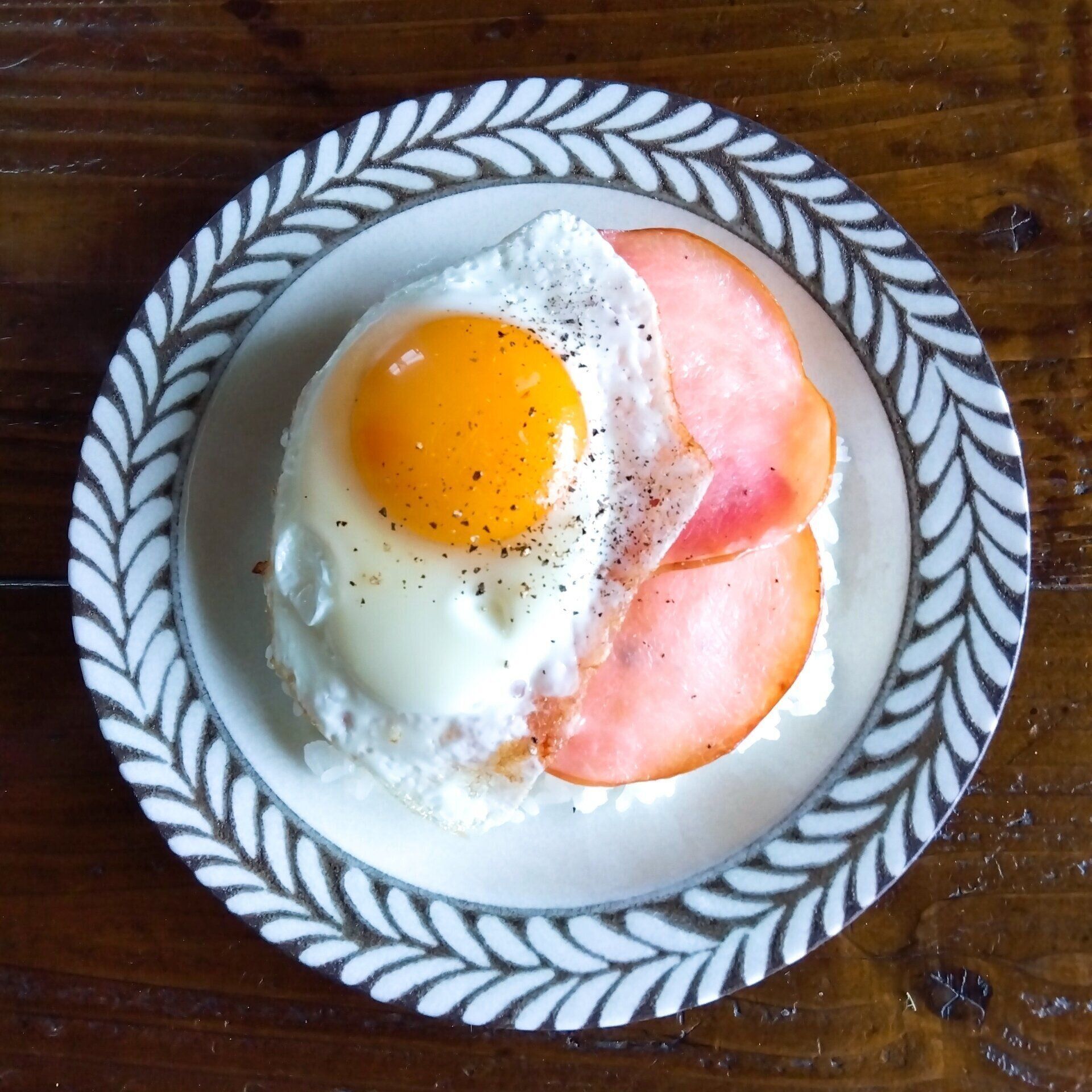ランチや小腹がすいたときなどにちょうどいいハムエッグ丼。