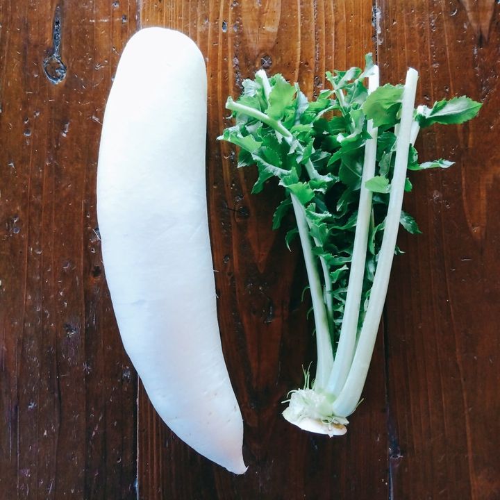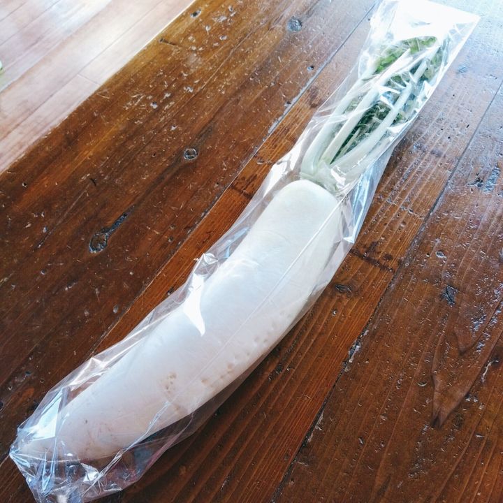 幸運にも「葉」つきの大根を買えた時には、葉が実の栄養を吸って成長してしまうので、帰宅後すぐに葉を切り落としています。