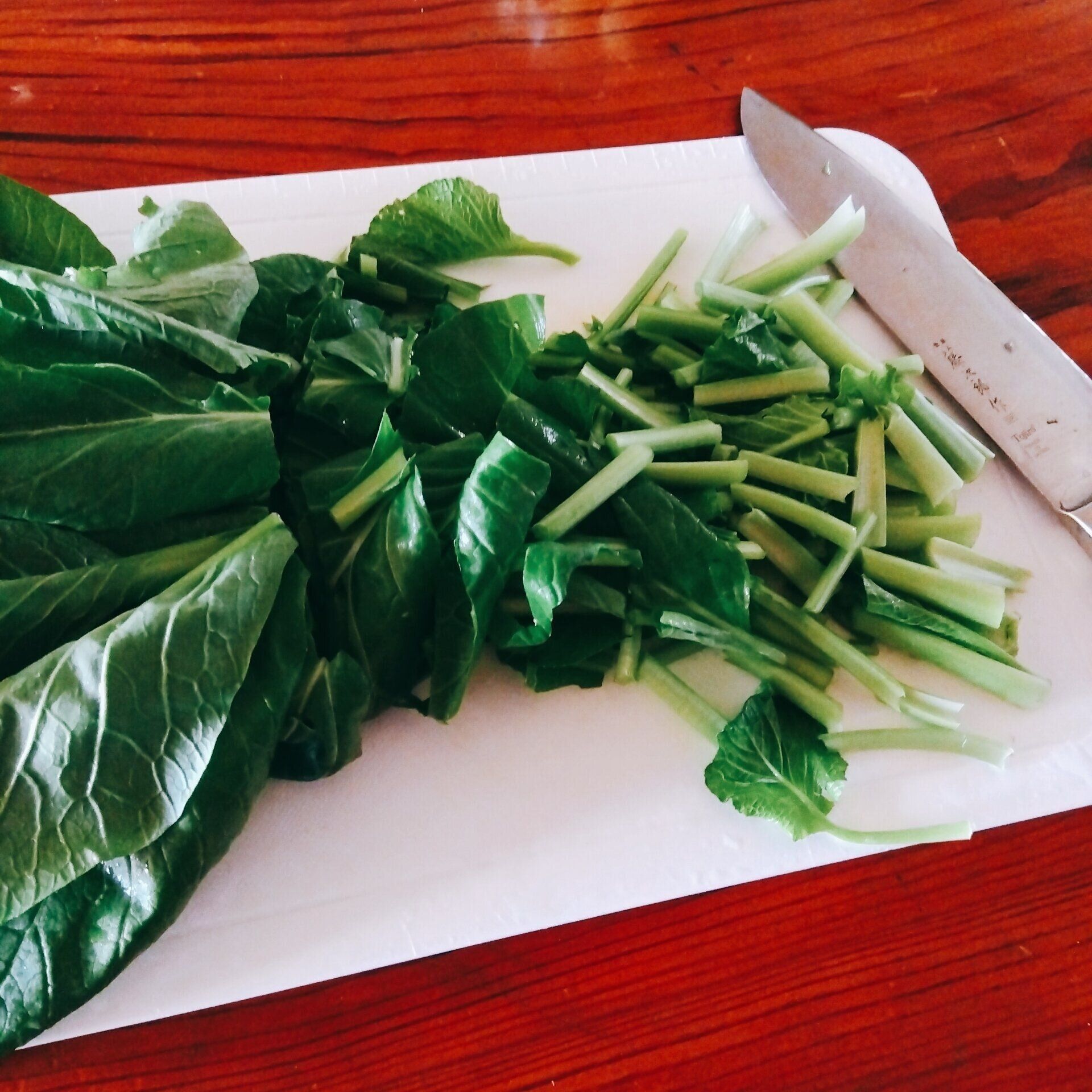 ほうれん草とは違い面倒な下茹でが不要なので「5cm」サイズにカットしておき、炒めたりサッと煮びたしにして、よく副菜に使っています。