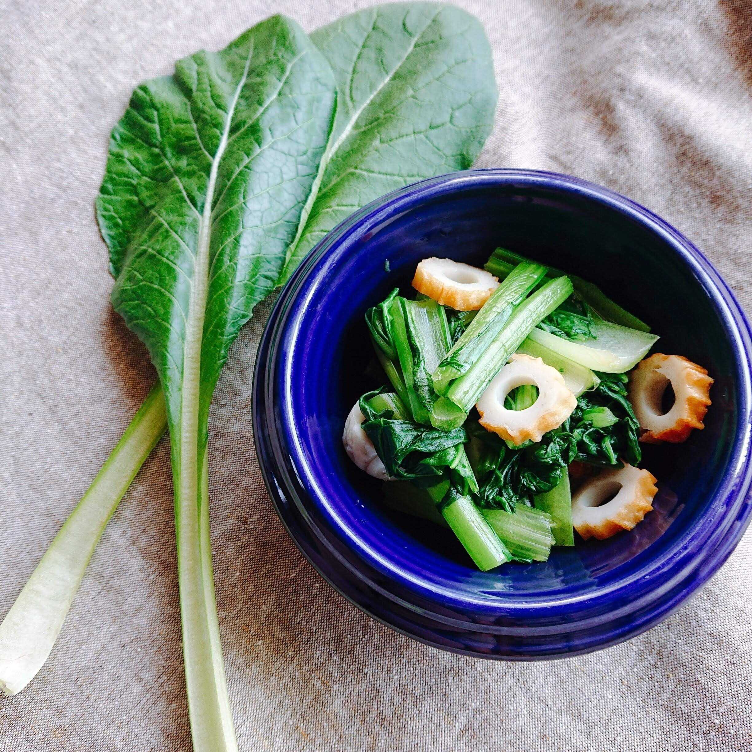 小松菜はちょっと味にクセがあるので、「ちくわ」や「じゃこ」、「カニカマ」などのうま味の強い食材を合わせて、子どもでもおいしく食べられるよう工夫しています。
