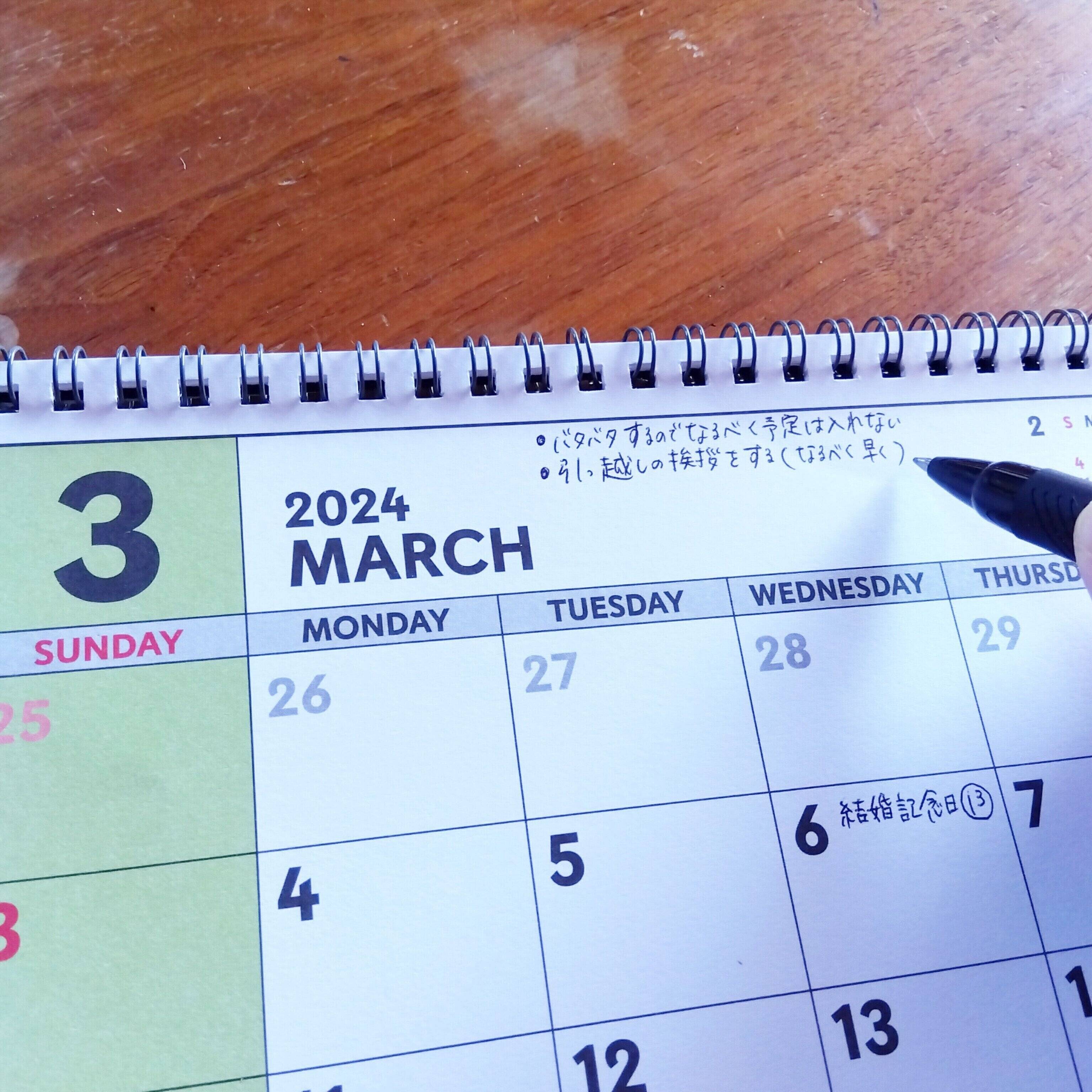 わが家は転勤族。3月はバタバタしており、4月の予定を書き込むことも多いのでカレンダーは4月始まりではなく「1月始まり」を購入しています。