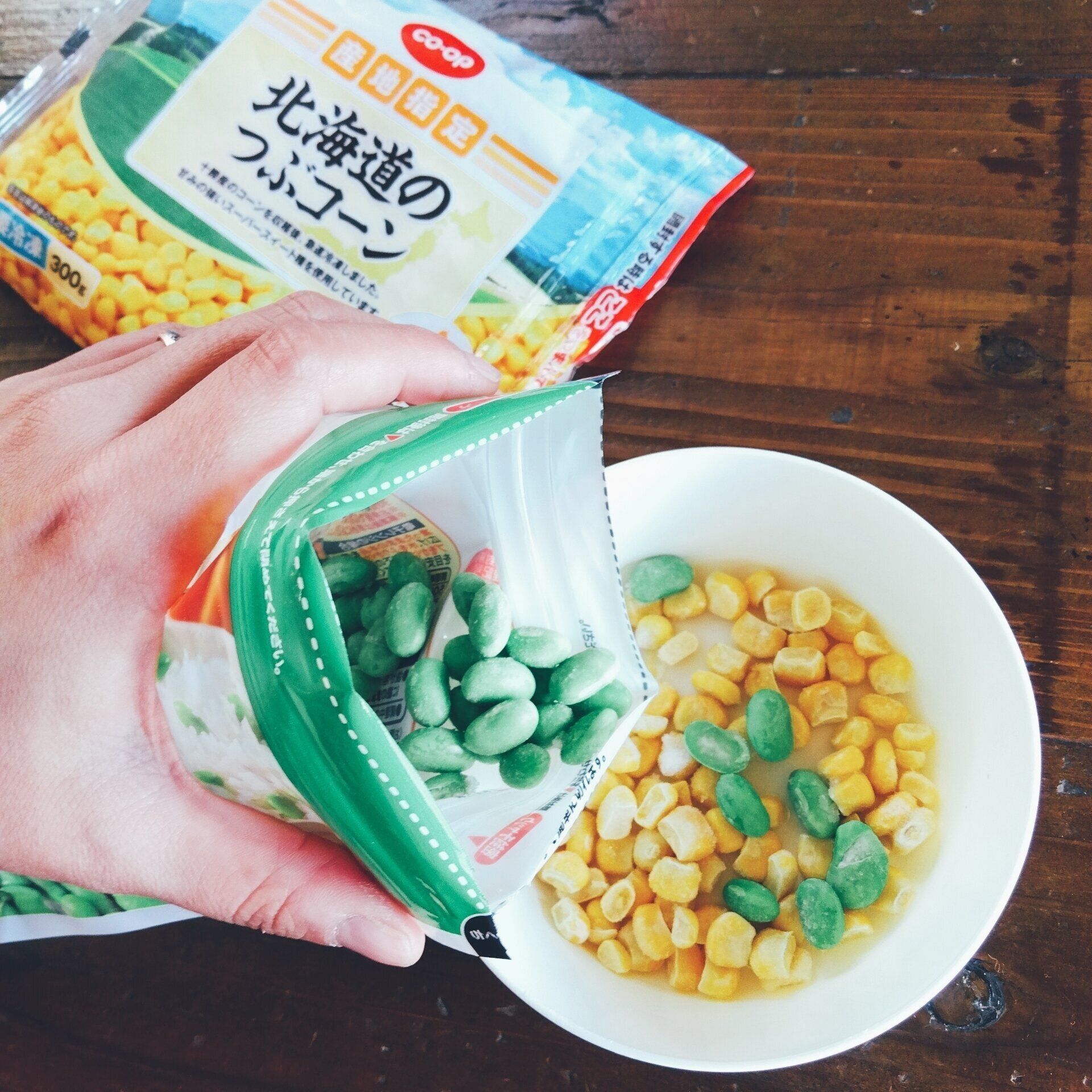 「お弁当のおかずが1品たりない」、そんなピンチのときにも大活躍する冷凍むき枝豆とコーン。