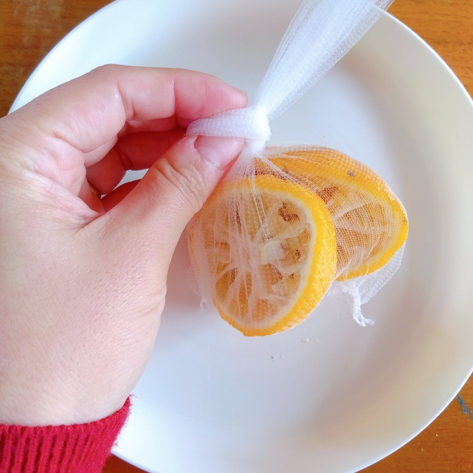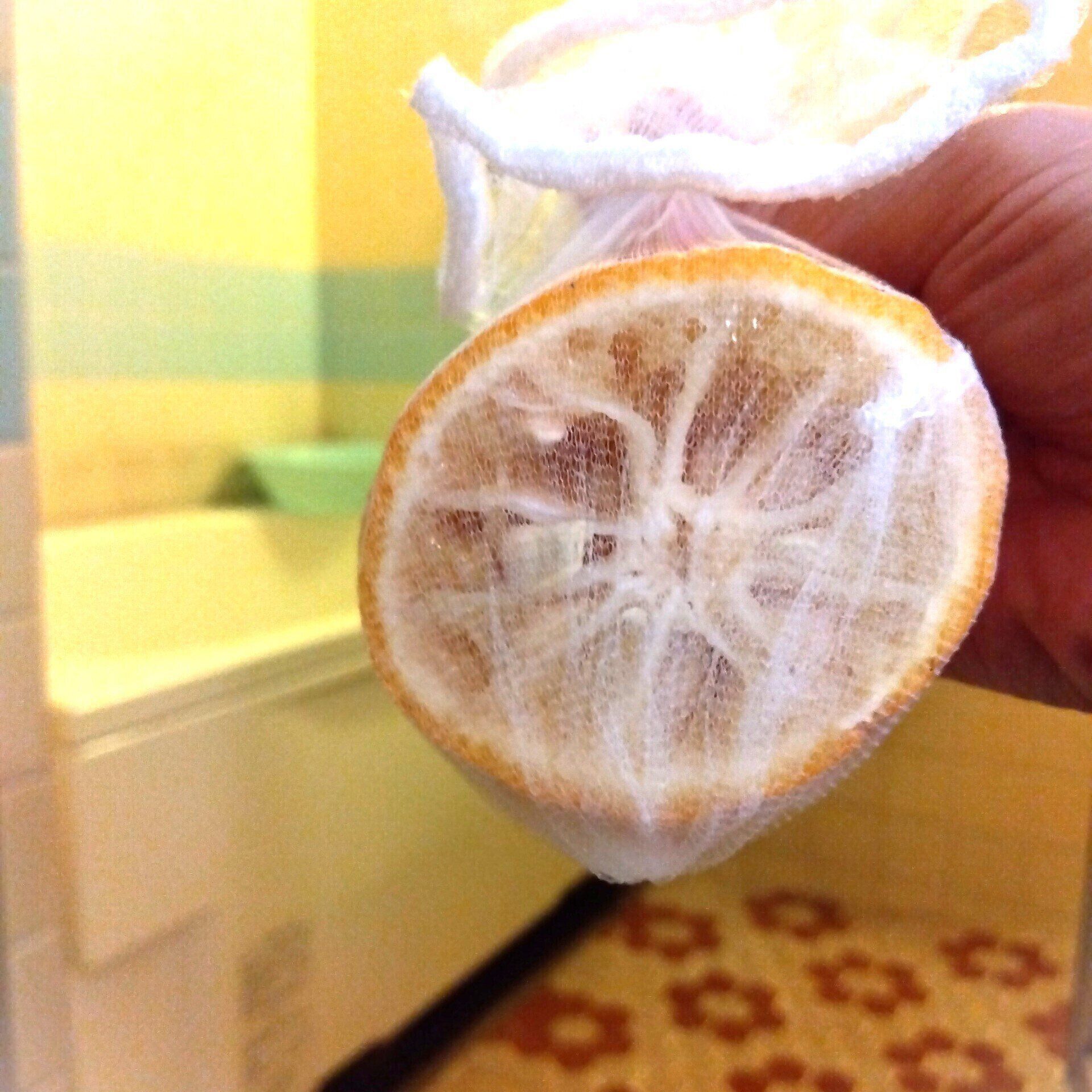 わが家には好奇心旺盛な5歳児がいるため、ゆずが粉々に散ってしまうのを防ぐため、排水溝のネットにゆずを入れるようにしています。