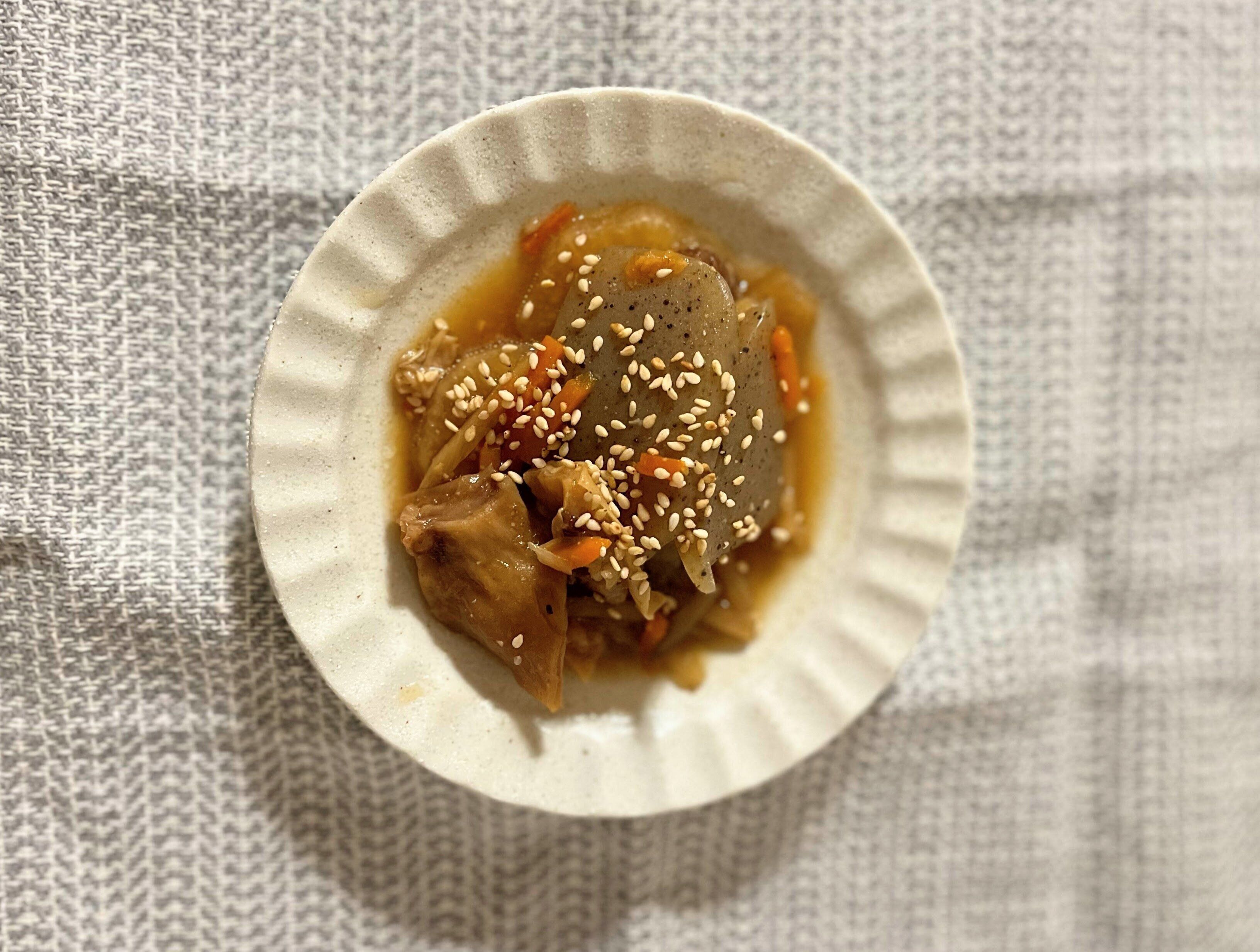 肉じゃがなどの煮物の味付けはコレ1本でOK。1対1~2でお水と割り、煮込むだけで煮物の失敗がなくなります。