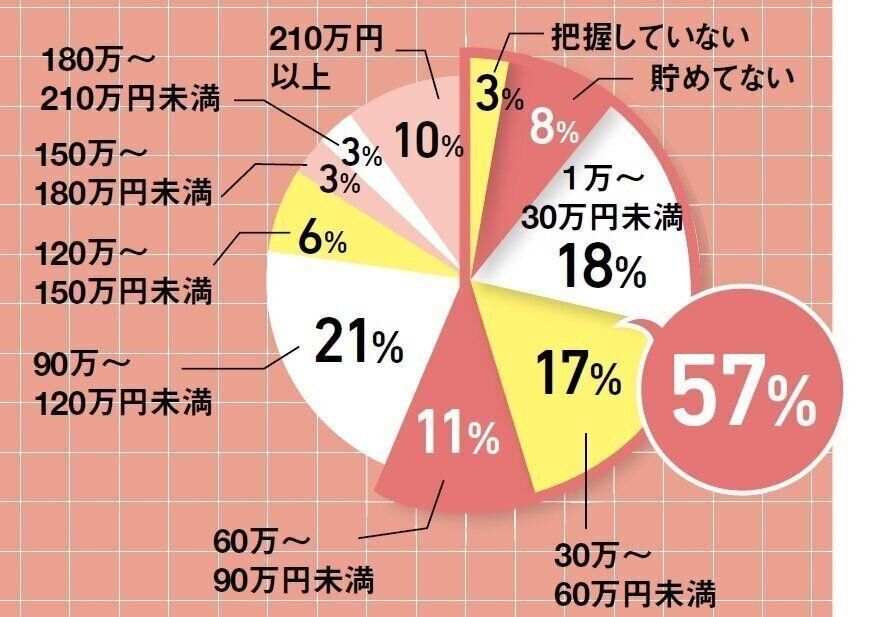 【年収500万~600万円台】年貯蓄額90万円未満の割合が57% 年収400万円台の貯蓄率より低い!