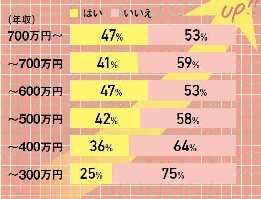 - 年収が上がるにつれて運動習慣がある人の割合が多かった!